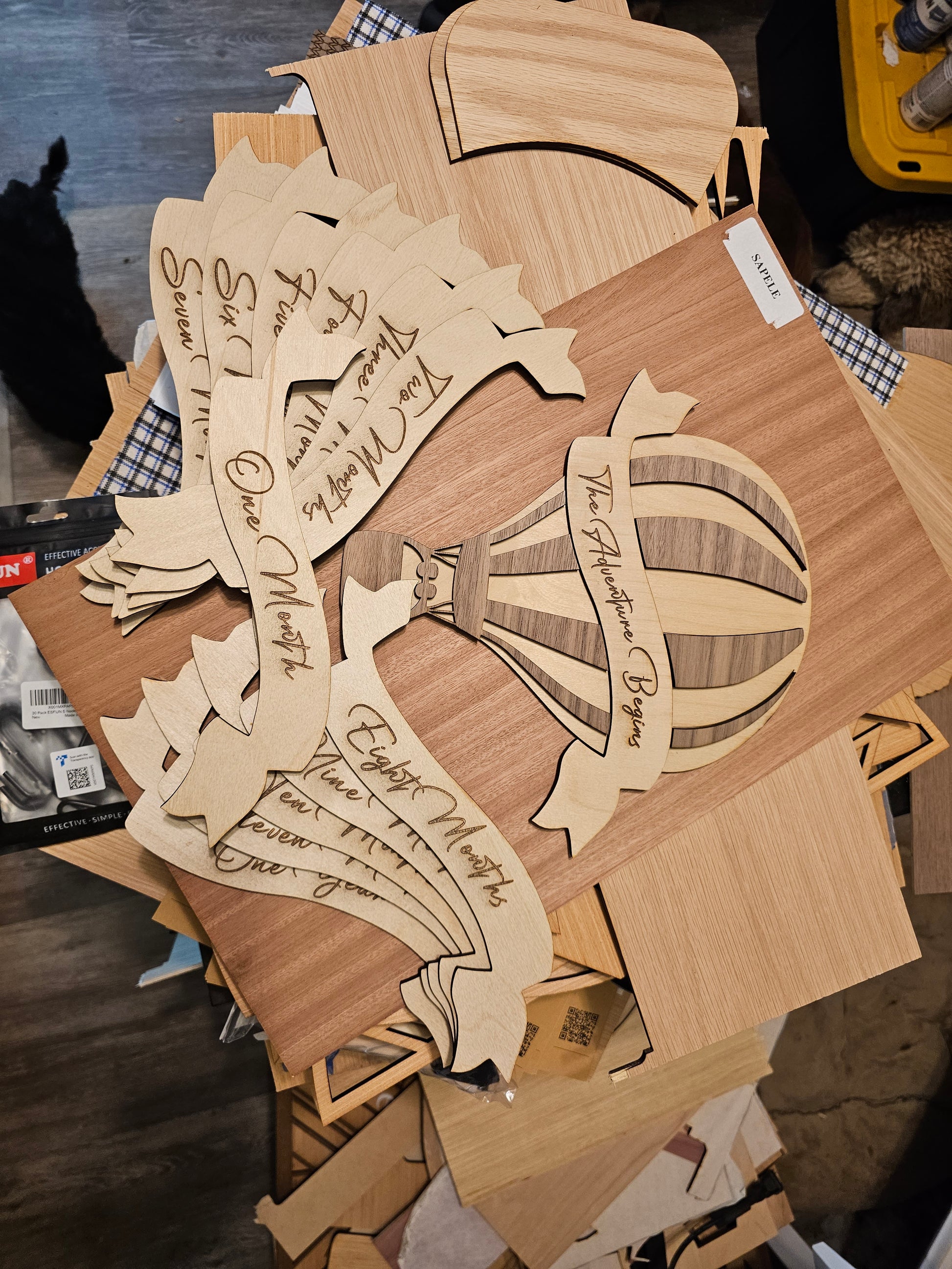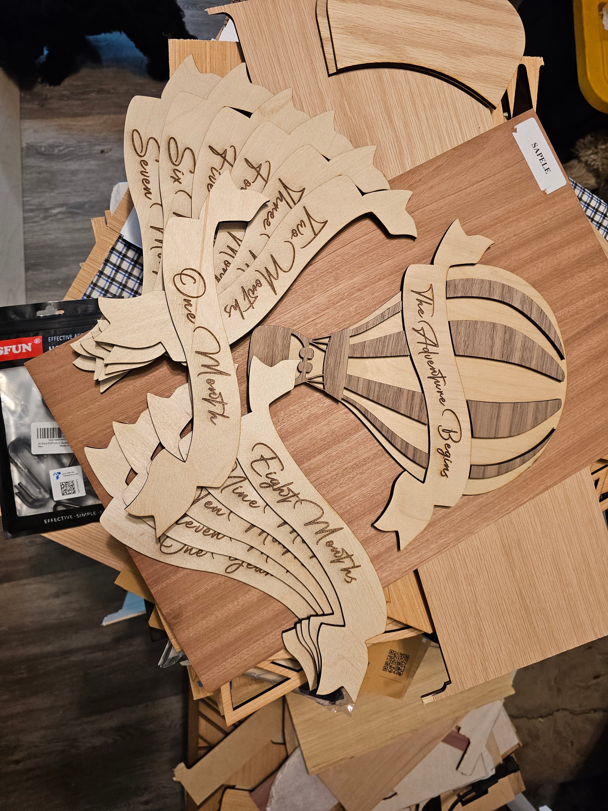 As sunlight dances off the wood grains, this hot air balloon serves not only as a decorative piece for the nursery but also as a timeless reminder of the precious moments of a baby's first year.