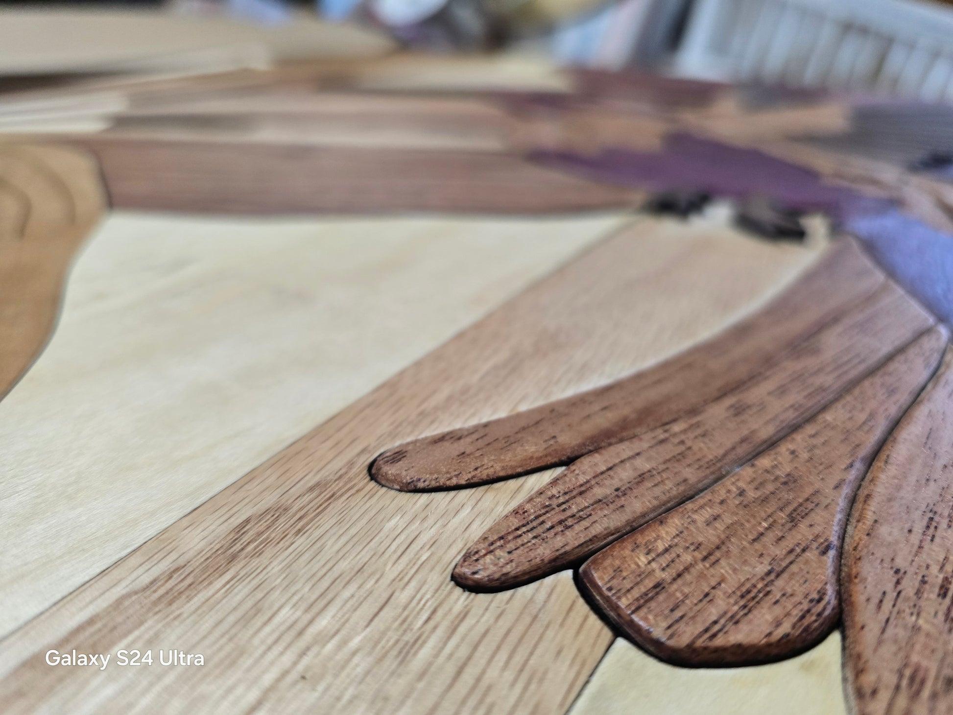 This piece is made using exotic hardwood. Each piece of the bird is hand shaped then sanded using 1000 grit sandpaper to be silky smooth. Then oiled with all natural Tung oil to make the wood colors rich and vibrant.