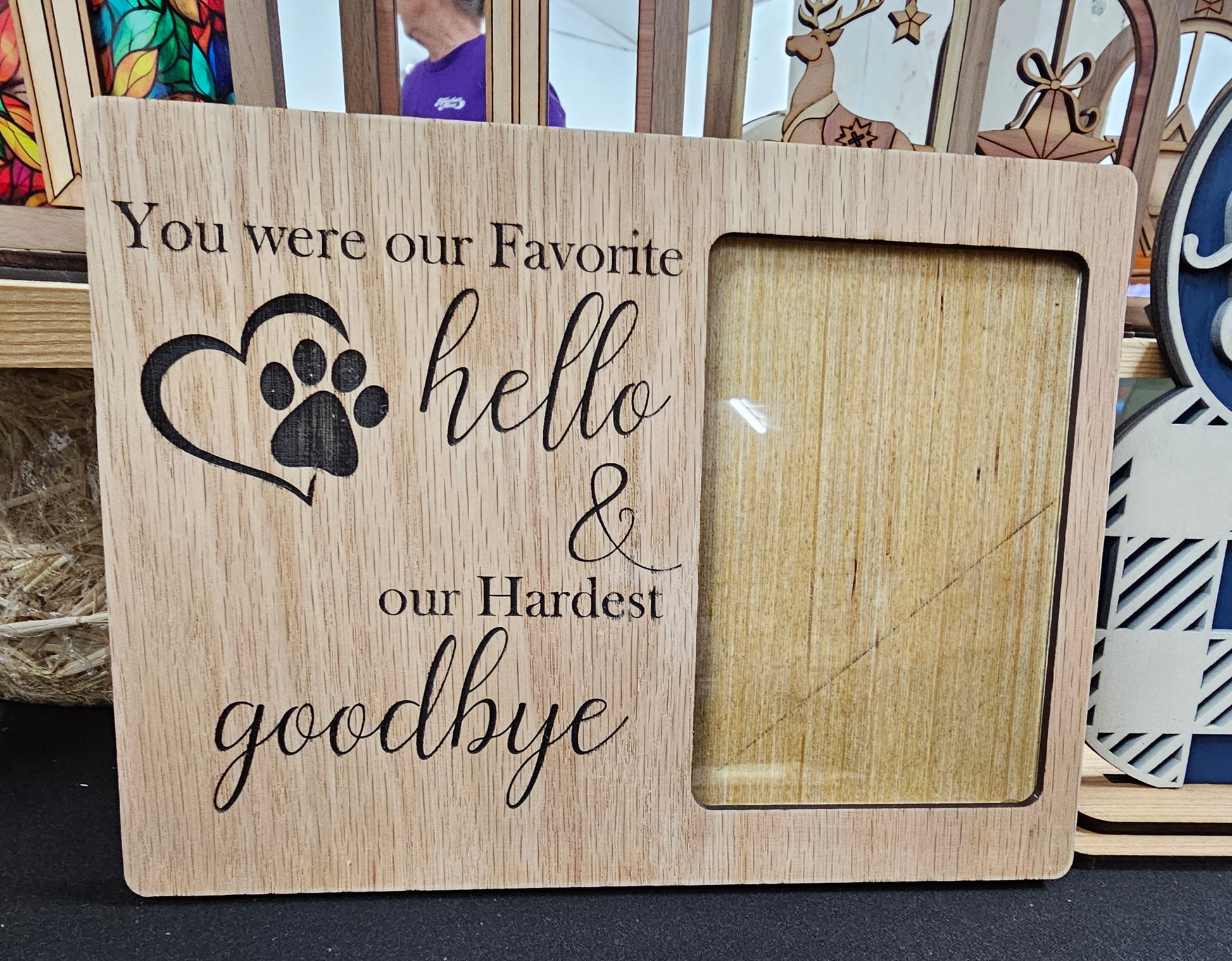The handmade pet memorial frame from Hodgenville, Kentucky, is a heartfelt way to honor and remember your beloved pet. This carefully crafted frame not only provides a special place to display a cherished picture of your furry friend but also serves as a tribute to their memory. Its handmade quality adds a personal touch to your tribute, making it a meaningful keepsake to hold onto the cherished moments you shared with your pet.