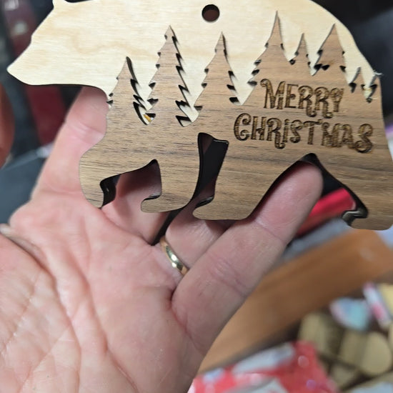 Bring the magic of the winter woods to your Christmas tree with these handcrafted wooden woodland animal ornaments. Each ornament features a detailed forest silhouette cut through the animal’s shape, paired with a rustic “Merry Christmas” engraving for the perfect holiday touch.